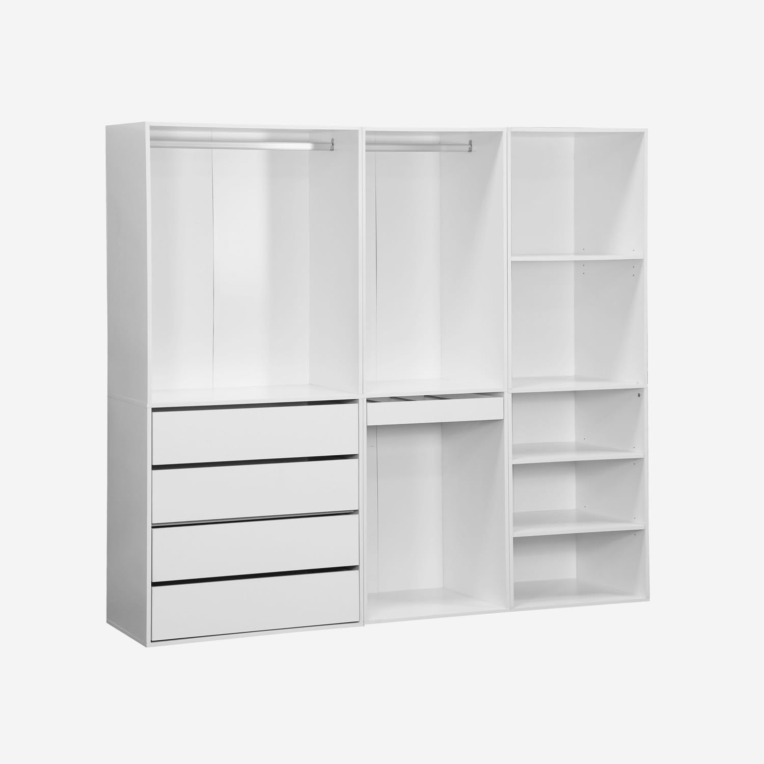 Ensemble Dressing Modulable Blanc avec Étagères, Tiroirs et Porte-Pantalons - 3 Éléments, 200 x 45 x 180 cm€96,81