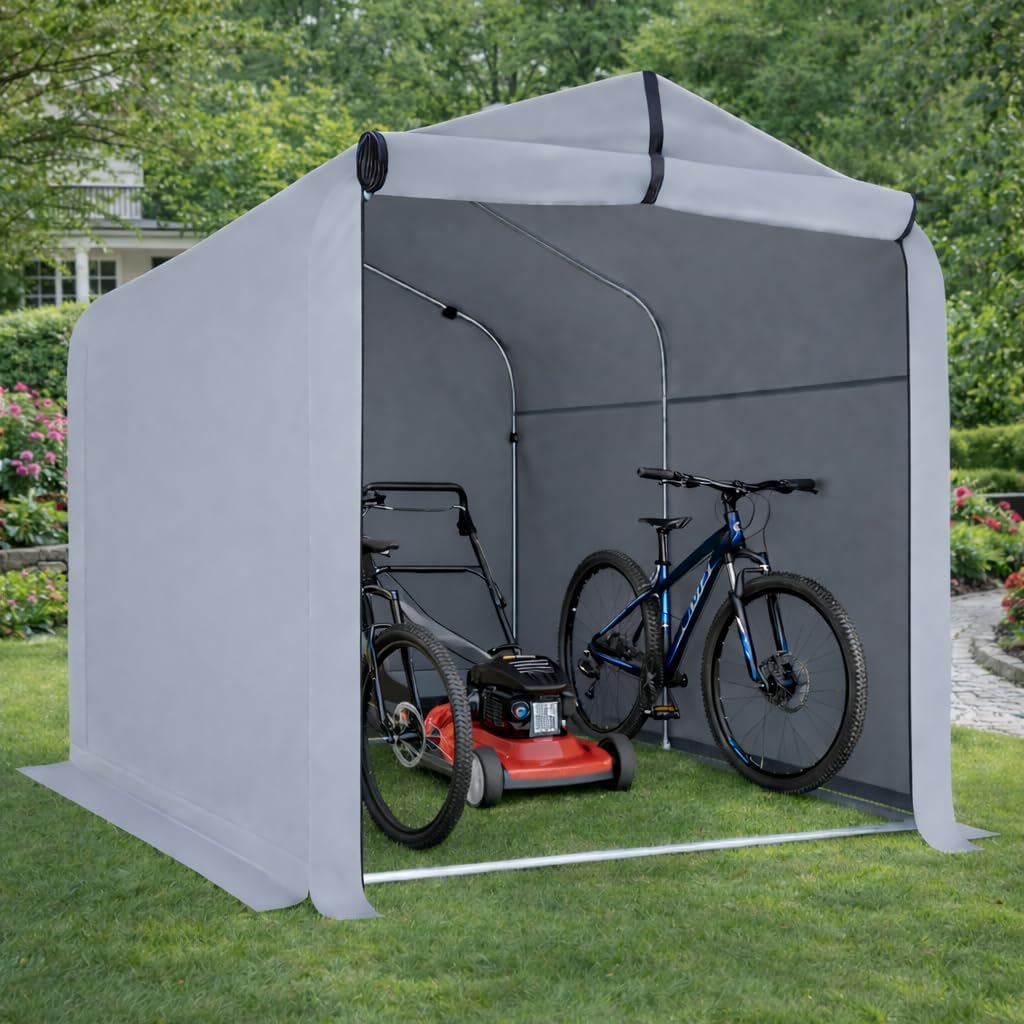 Abri pour vélos conçu en polyéthylène pour protéger contre la pluie, la neige et les rayons UV. Structure en acier galvanisé solide résistant à la corrosion et au vent. Dimensions intérieures de 220 x 157 x 195 cm permettant de ranger 2 à 4 vélos, scooters ou motos légères. Assemblage simple avec les instructions fournies, sans nécessité d'outils complexes. Convient pour les jardins et les terrasses, offrant une solution de stationnement sécurisée.