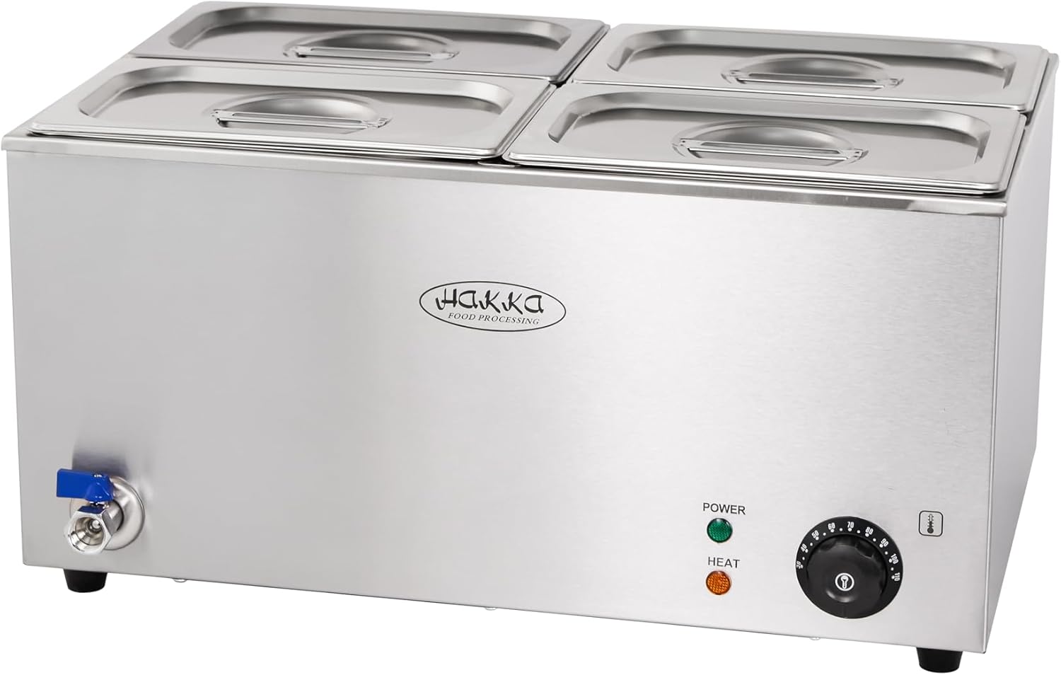 [Matériau] Ce chauffe-plat électrique est fabriqué en acier inoxydable épais de qualité alimentaire, résistant à l'écrasement et aux chutes. Sa conception légère facilite son transport. [Température réglable] Ce chauffe-plat électrique offre une température réglable de 30 à 85 °C. Un cadran avec des graduations "Off" et "1 à 5" permet d'ajuster facilement la température. Un voyant lumineux au-dessus du cadran indique si le chauffe-plat est allumé. [Capacité] Ce chauffe-plats Hakka peut contenir une casserole standard de 1/1, deux casseroles de 1/2 ou trois casseroles de 1/3 jusqu'à 15 cm de profondeur. [Indicateurs de niveau d'eau] Le réservoir d'eau est en acier inoxydable résistant à la corrosion et équipé d'un dispositif de vidange simple. Il comporte également des repères "Max" et "Min" à l'intérieur du réservoir d'eau. Cette conception permet de savoir quand il est temps de remplir l'appareil. [Chauffage] L'élément chauffant de ce chauffe-plat fournit 1200 W pour conserver les aliments chauds. Il préchauffe en seulement 30 minutes et peut être utilisé dans les restaurants, snack-bars, cafés, cantines scolaires, etc.