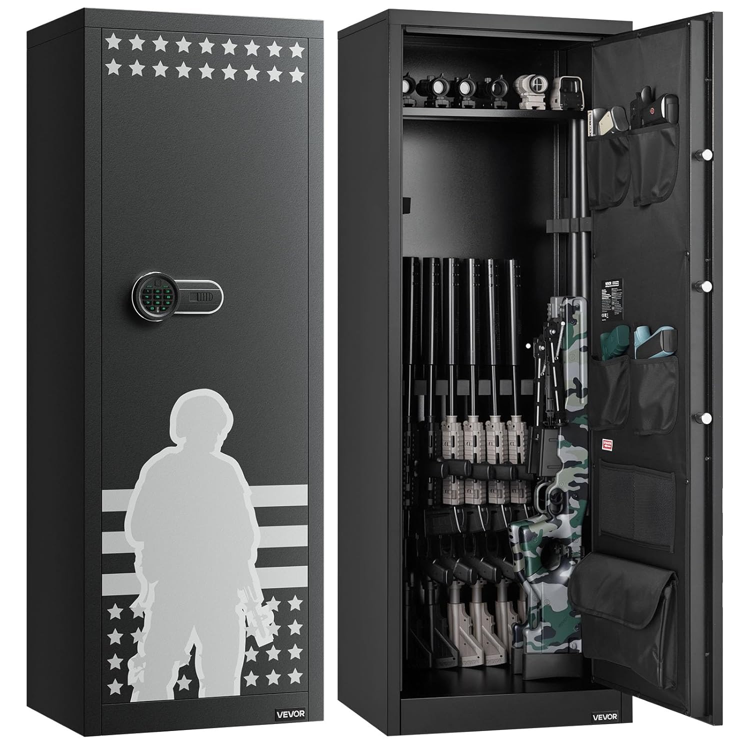 VEVOR Coffre-Fort de Sécurité pour Fusils 10-12, Verrouillage Numérique et Clé, Poches pour Pistolets et Supports Réglables, Accès Facile pour la Maison